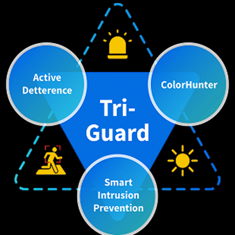 Warehouses often operate in varying light conditions. Tri-Guard’s ColorHunter, powered by F1.0 super-large apertures and 5th-Gen Wise-ISP technology, delivers vivid, full-color images in near-darkness (0.0003 Lux) without additional lighting. This ensures clear footage during night shifts or in dimly lit areas.