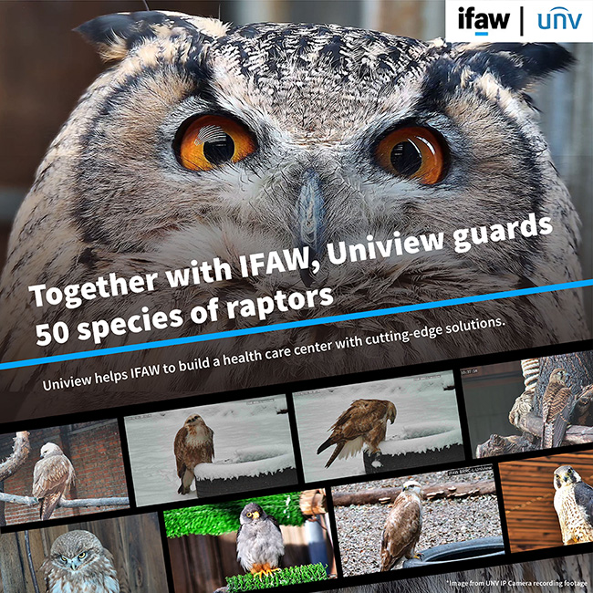 In 2021, Uniview partnered with the International Fund for Animal Welfare (IFAW) to enhance wildlife rescue and protection efforts. To prevent disturbances to injured animals, Uniview met the challenge, completing the installation of all monitoring points within three months. Now the IFAW Beijing Raptor Rescue Center (BRRC) rehabilitators can observe the status of raptors in real-time without the need to approach their rooms, thus reducing the raptors' stress responses. Under the monitoring of these cameras, the raptors exhibit relaxed natural behaviors, helping rehabilitators in making more informed medical and rehabilitation plans for them. Raptors like Eurasian Eagle-owls and Common Kestrels can be observed in remarkable detail, with high-resolution cameras capturing their entire bodies as well as intricate features such as pupils, feathers, and plumage reflections.