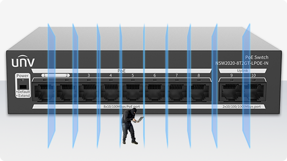 Las cámaras exteriores son propensas a los rayos que pueden afectar a los switches. Los switches de Uniview cuentan con protección contra sobretensiones, lo que prolonga su vida útil y garantiza el funcionamiento de las IPC.