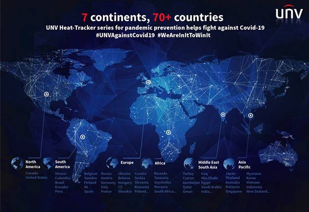 In response to the current global situation, Uniview, as the world’s leading video surveillance, increases the manpower input to find out the better technology and develop temperature measurement products. Uniview has delivered Heat-Tracker series products and solutions to 7 continents and more than 70 countries for helping fight against Covid-19.