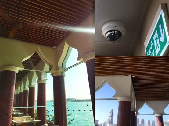 La solution de surveillance du restaurant Marsa Katara est très complète : des caméras sont installées dans tous les endroits tels que la réception, la salle à manger, la zone d’accès restreint, les halls, la cuisine et les murs extérieurs. Tout risque serait détecté à sa naissance.