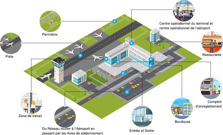 L’aéroport étant l’un des secteurs les plus concernés par l’utilisation d’un système de sécurité, les exploitants d’aéroports sont particulièrement attentifs au développement des technologies de la sécurité et à leurs applications. Toutefois, la mise en ?uvre d’un système de vidéosurveillance dans un aéroport présente son lot de difficultés, compte tenu du nombre important de passagers, d’entrées et sorties, de salons, de couloirs et de comptoirs d’enregistrement à surveiller, avec des scénarios parfois complexes.