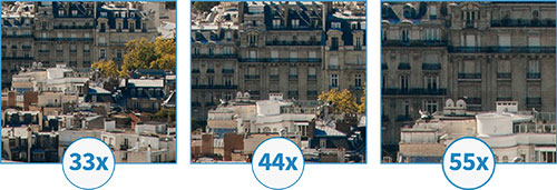 • Up to 55X optical zoom, 300mm+ motorized lens