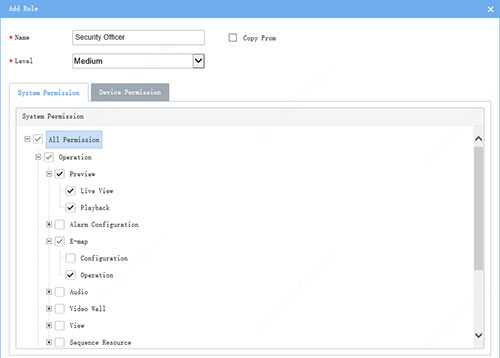 In order to meet the requirement of different camera access for different departments and users, UNV VMS can build up a credential system for every account. Administrator can divide different authority levels for every department and every user through credential system. Furthermore, administrator can also log out lower-level users to save resources if needed. In addition, administrator is able to lock users, set valid date and daily valid time through remote operation.