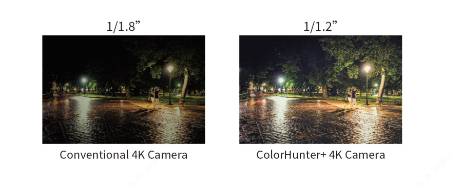 ColorHunter, 4K ultra HD ile bulu?tu?unda kameralar her detaya canl? ve renkli bir ?ekilde ula?abilen g?rüntüler yakalayabilir. 4K ultra HD, 1/1.2" büyük boyutlu sens?rü sayesinde, ek ???k kaynaklar? kapal?yken bile canl? ve renkli g?rüntü sa?lar.