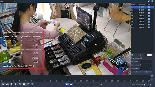 • Video images and corresponding POS information can be combined together through integrating NVR with POS devices